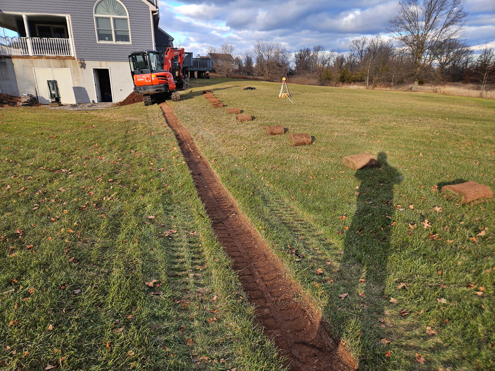 French drains, channel drains, downspout tie-ins, regrading, and erosion control.